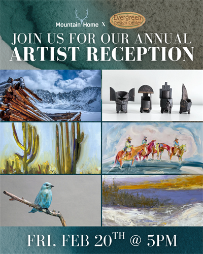 The Evergreen Design Center and Mountain Home invite you to join us for an Evening of Art at our 2026 Annual Artist Reception!